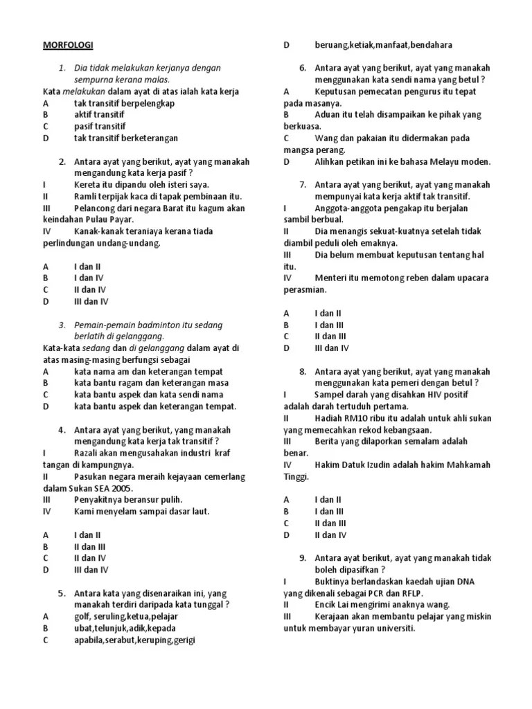 Latihan Kata Kerja Tak Transitif Berpelengkap / Nota Rujukan Kata Kerja Transitif Pdf Document. Assalamualaikum dan selamat sejahtera.apa khabar semua? Video ini menerangkan kata kerja tak transitif (kktt) berpelengkap iaitu kata kerja yang mesti diikuti oleh pelengkap. Latihan kata kerja transitif dan tak transitif susunan kumpulan. Kata kerja tak transitif berpelengkap. Saya pun tak faham apa yang soalan . Kata kerja aktif transitif tanpa pelengkap apabila diperluas dengan kata nama perlu__________. Kata kerja tak transitif berpelengkap.